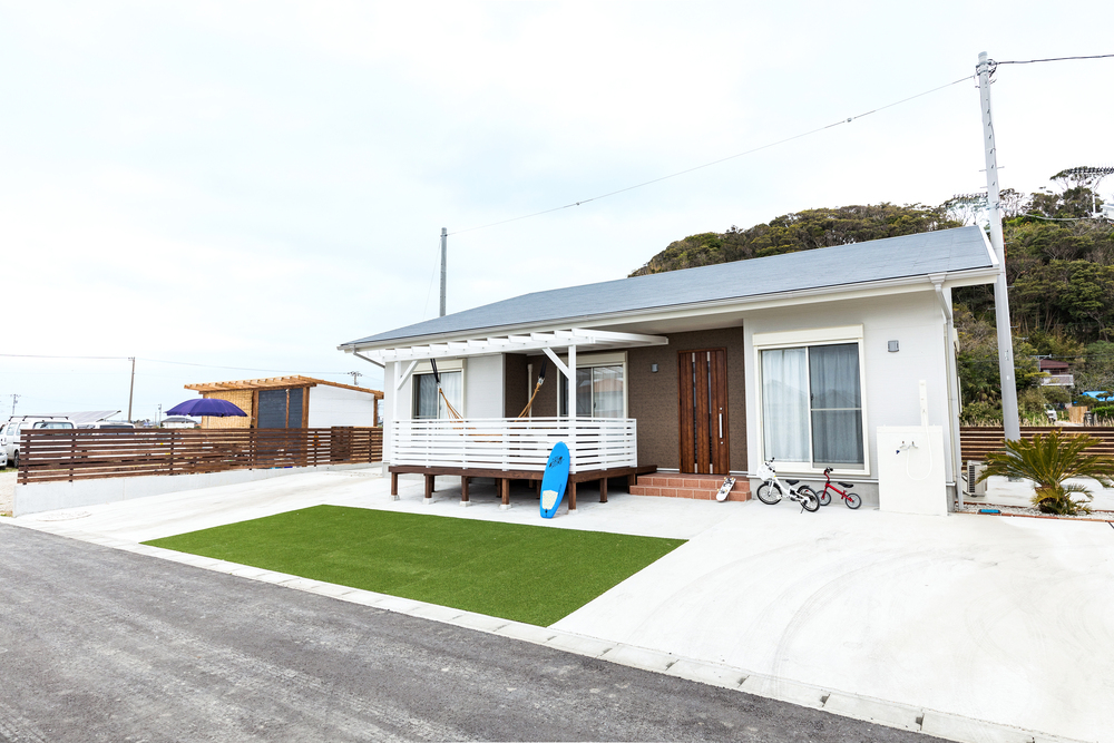Laguna(ラグナ)B棟は2020年に建てられたカリフォルニアテイストの新築民泊です。まるごと一棟貸し切りなので、ホテルにはないプライベート感を満喫できます。海まで徒歩5分。高速光回線完備でリモートワークにも活用できます。