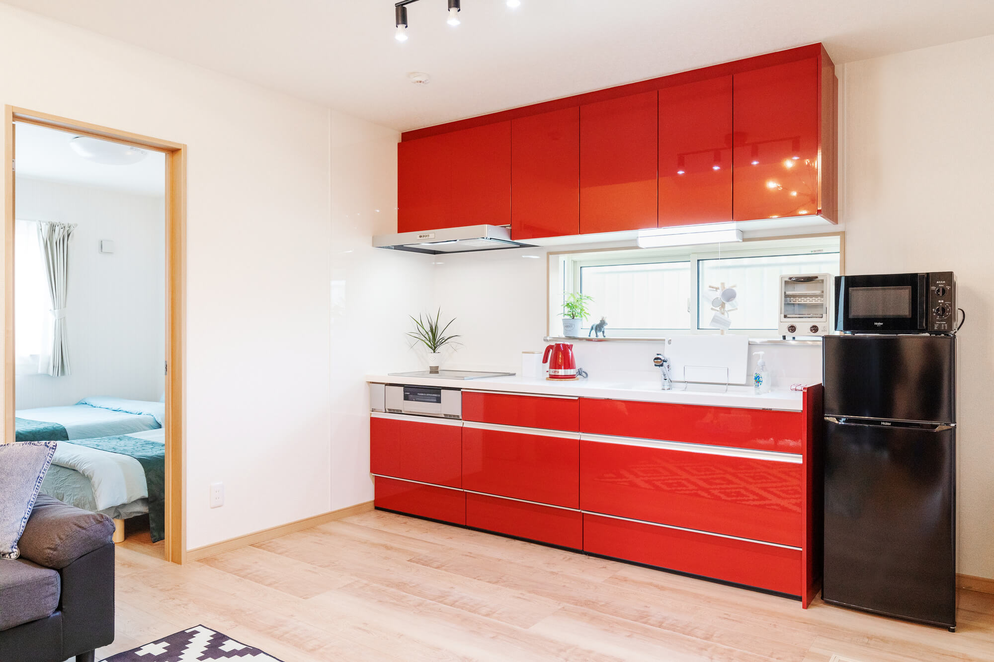 インターネットは高速な光回線を引き込んでいますので、ワーケーションにも最適です。リビング、寝室、ソファベッドのお部屋とすべて個室化できるので、お仕事に集中したい時、適度に休憩をしたいときなど、過ごし方にメリハリをつけやすい間取りになっています。